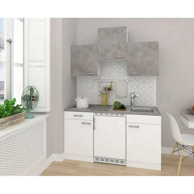 - Électroménager inclus : 1 réfrigérateur encastrable et 1 plaque de cuisson