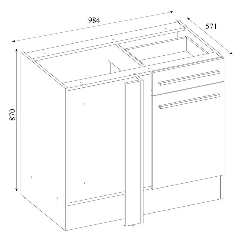 - Meuble bas d’angle (L x H x P) : 98 x 87 x 62 cm