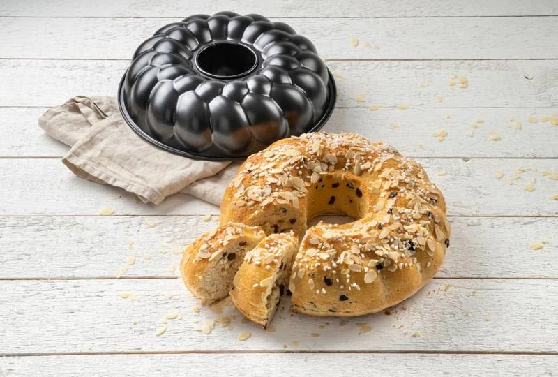 - Autres caractéristiques : LE PETIT + : Dans ce moule à pain en couronne vous pourrez préparer du pain maison, de la brioche maison ou bien n’importe quel gâteau