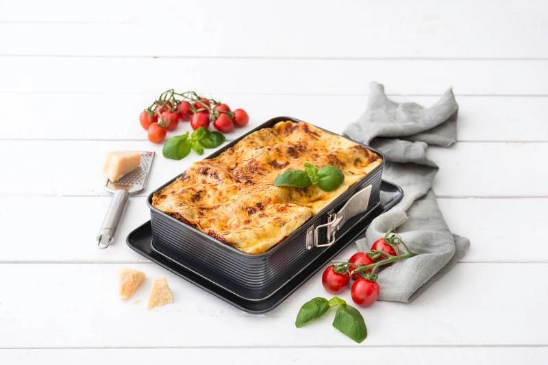 - Autres caractéristiques : LE PETIT + : Ce plat à four rectangulaire peut également être apprécié en tant que moule à charnière rectangulaire pour préparer de bons gâteaux à partager.